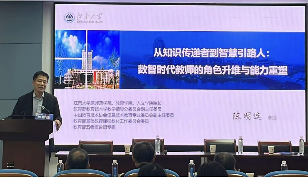 江南大学陈明选教授作了《从知识传递者到智慧引路人:数智时代教师的角色升维与能力重塑》的报告。他指出,数智时代教育正从“技术叠加”向“范式革命”转型。面对AI带来的“知识权威”解构等挑战,教师需实现角色升维,从传统“知识传递者”转变为学习引导者、情感联结者的“智慧引路人”,并进一步构建了涵盖数智素养、教学设计力、持续学习与创新力等的教师五维能力图谱。在实践路径上,教师个体要转变心态、补齐能力短板等,院校需营造支持性文化、提供培训等。最终强调数智时代教师核心价值是“育人育心育智”,终极指向培养“转识成智”的完整生命。