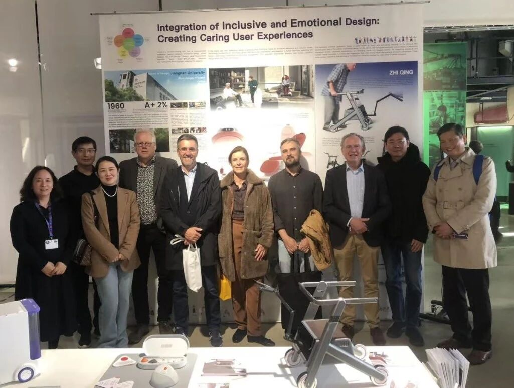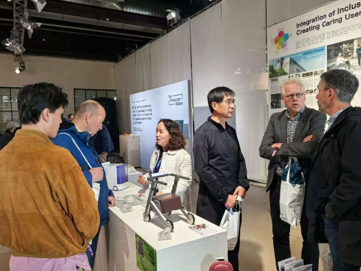 参展作品成功吸引了全球专业设计师、研究学者、产业界人士及社会大众的广泛关注,众人纷纷驻足观摩,围绕设计理念与作品细节展开深入交流探讨。此外,本次参展也成为无锡市对外展示城市文化与设计实力的重要窗口,无锡市政协副主席毛加弘、无锡市政协副秘书长吴春林一行莅临现场,对展出的设计作品给予高度评价。荷兰北部拉邦省国际部门主任LiekevanDorst,中荷友好协会主席Monique女士、飞利浦亚太区前首席执行官FransGreidanus先生、荷兰代尔夫特理工大学DaanVanEijk教授、荷兰埃因霍温理工大学胡军教授、荷兰北部拉邦省代表王旭、江苏省商务厅驻荷兰经贸代表熊震等也对江南大学设计学院的专业实力与创新成果给予了充分肯定。