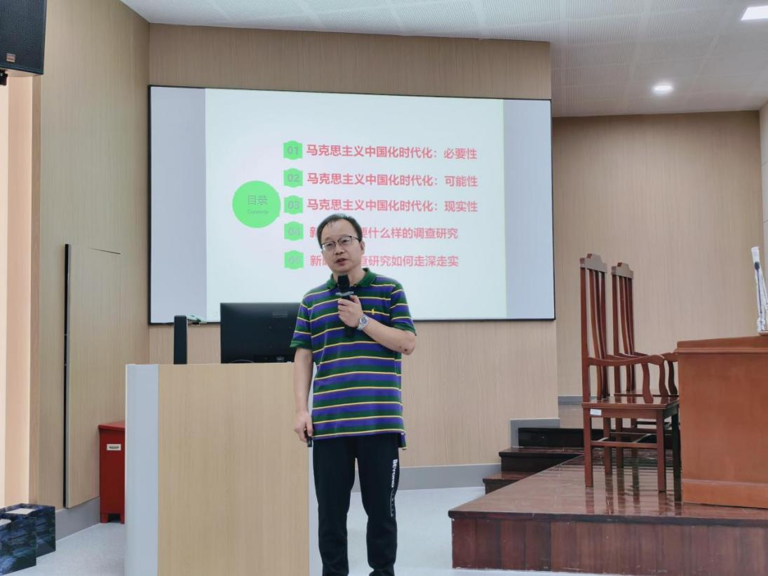 马克思主义学院副教授彭长华老师进行专题授课。他从毛泽东“没有调查就没有发言权”到习近平“深实细准效”五字诀,介绍马克思主义中国化视角下调查研究方法策略,强调新时代调研要坚持实事求是、群众路线、问题导向,以理论武装、作风转变、制度保障走深走实。彭长华老师寄语全体参训学员要在生活、学习中强化调查研究本领,为投身全面建成社会主义现代化强国担当青春使命,贡献青春力量。