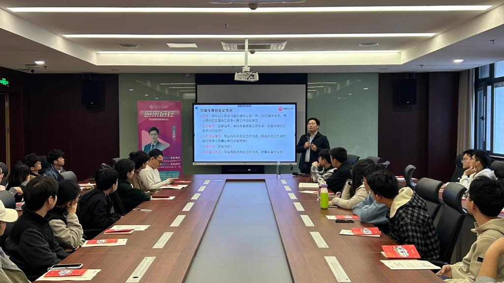 为帮助环境学子准确把握当前就业形势,科学规划职业发展路径,10月24日下午,江南大学环境与生态学院在清源楼A210开展“职来值往—生涯领航与就业指导”专题讲座。本次讲座聚焦公务员与选调生招考政策,邀请资深公考培训老师吕洪刚担任主讲,40余名学生参会,讲座由辅导员李猛主持。