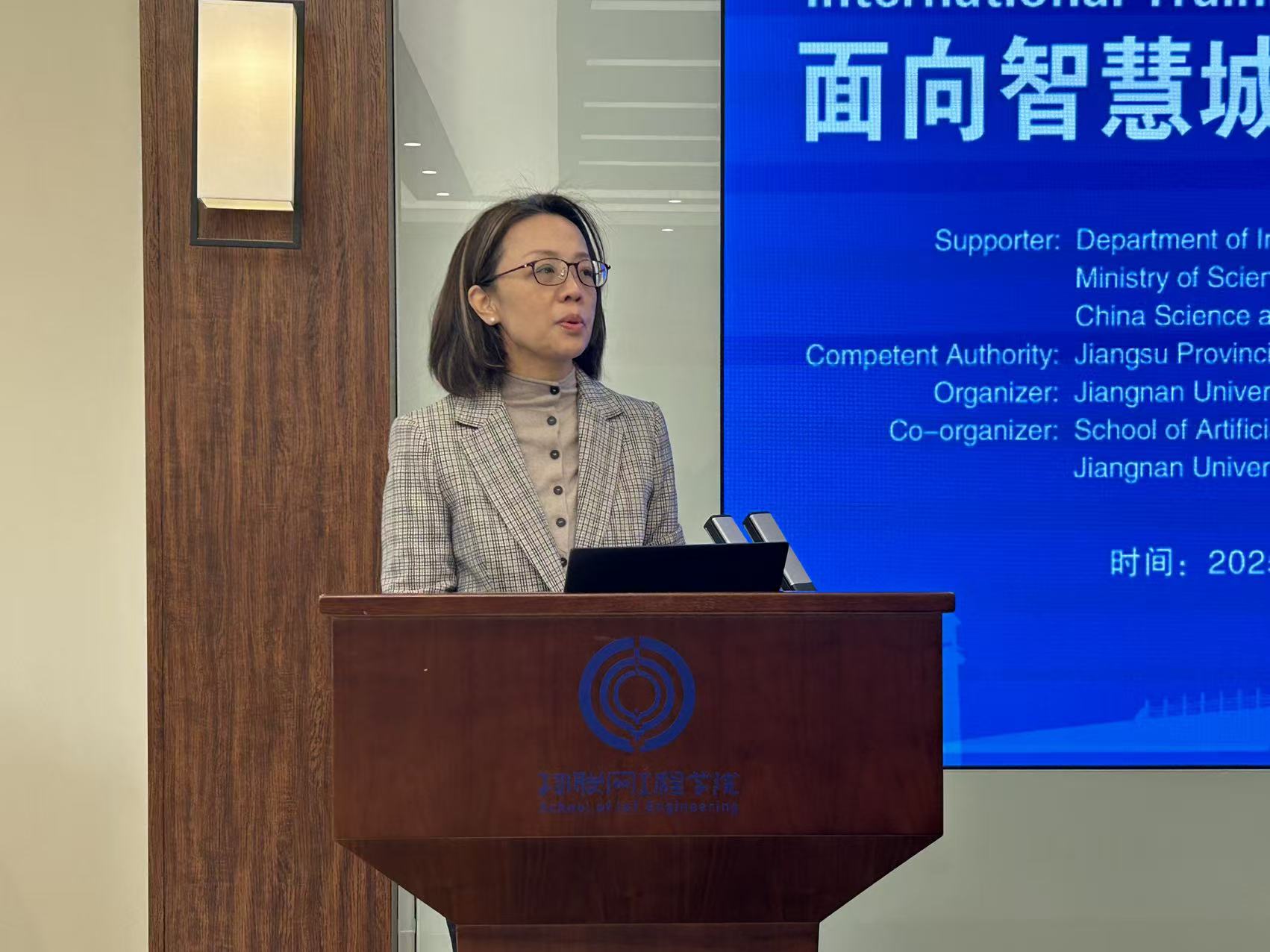 12月2日,“面向智慧城市的人工智能技术国际培训班”在江南大学举行开幕式。江南大学党委常委、副校长张影陆出席并致辞,研究生院院长、卓越工程师学院执行院长吴小俊,人工智能与计算机学院党委书记李艳、院长方伟等领导出席活动。开幕式由江南大学国际交流合作处处长倪晔主持。本次培训项目由中华人民共和国科学技术部国际合作司、中国科学技术交流中心支持,江苏省科学技术厅归口管理,江南大学主办,人工智能与计算机学院与国际交流合作处联合承办,旨在响应“一带一路”倡议,推动全球智慧城市建设与人工智能技术合作。