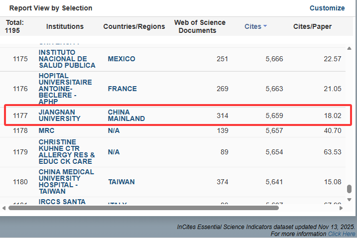 2025年11月13日,ESI(Essential Science Indicators)公布了从2015年1月1日至2025年8月31日的最新统计数据。