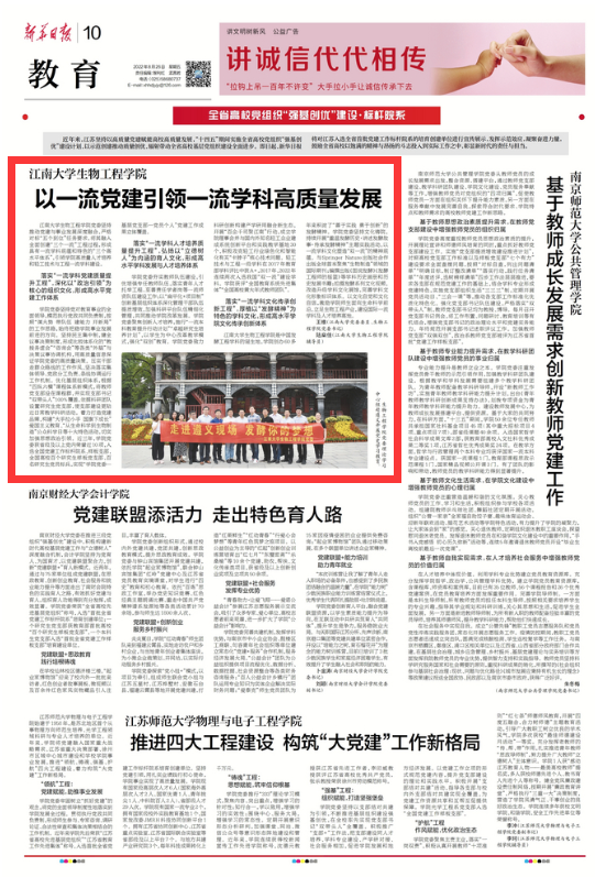 《以一流党建引领一流学科高质量发展》获《新华日报》报道