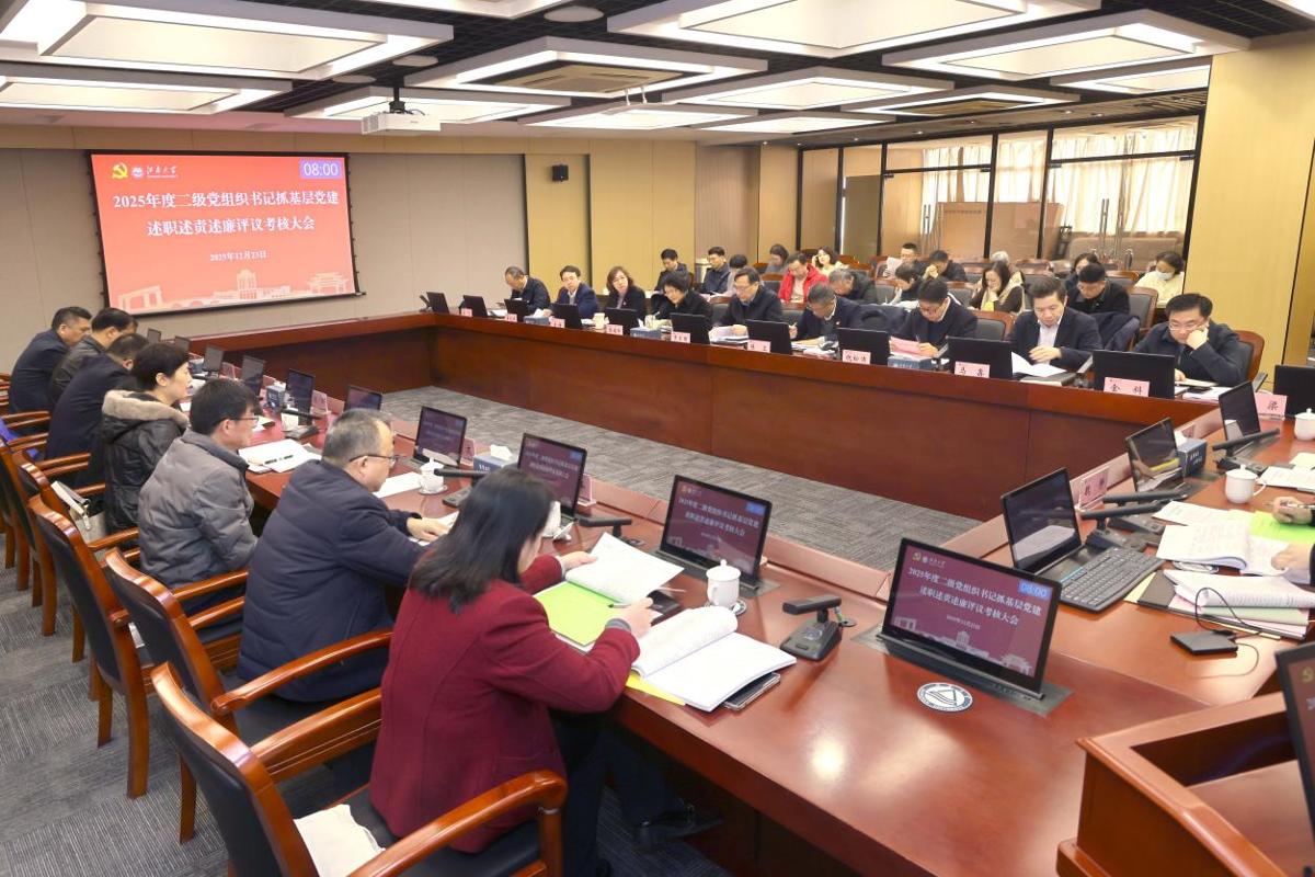 12月23日上午,学校2025年度二级党组织书记抓基层党建述职述责述廉评议考核大会在行政楼B307会议室举行。教育部党建工作联络员、中国药科大学原党委副书记张福珍应邀出席会议并作点评,校党委书记吴正国主持会议并讲话。校党委常委、校领导、校纪委委员、党群职能部门主要负责人、纪委内设机构负责人、二级单位党组织书记参加会议。
