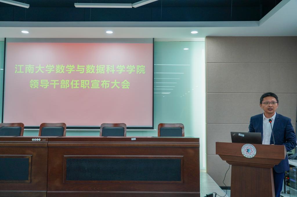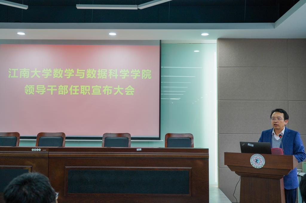 张梁宣读了关于任命陈勇同志为数学与数据科学学院党委书记、郭改慧同志为数学与数据科学学院院长的任职决定。