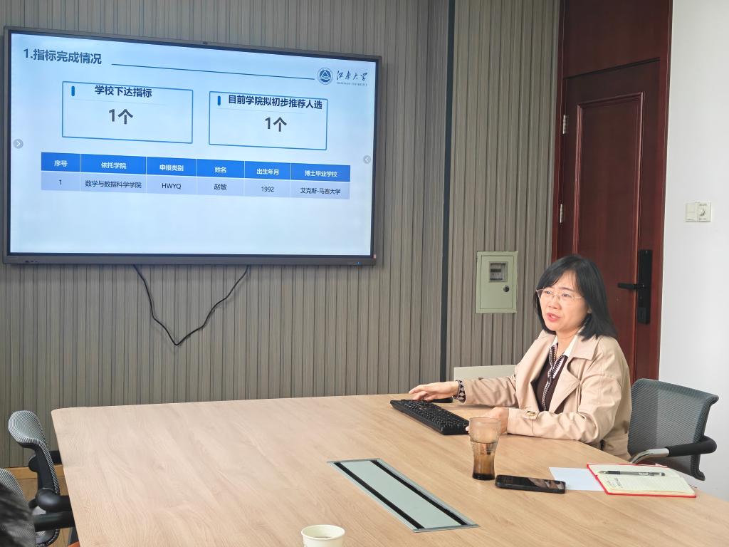 4月9日上午,江南大学副校长金科、人才工作办公室副主任兼院士工作办公室主任苏晓晋赴数学与数据科学学院开展人才工作专项调研。学院党委书记陈勇,院长郭改慧,副院长陈晶,院长助理杨南迎、仲红秀参加会议。