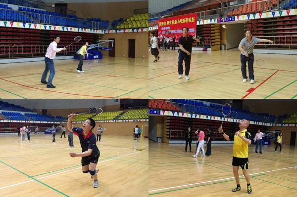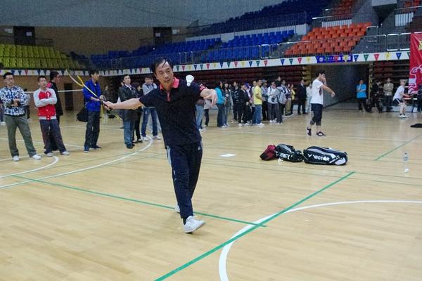 比赛进行了简短的开赛仪式,在宣布了本次比赛的规则及赛制,所有参赛队员合影留念,以及简单热身后,首先进行的是1对1对抗赛。随着裁判的一声哨响,比赛在五个场地同时展开!只见赛场上空掠过一只只羽毛球,伴随着一次次凶狠的扣杀飞旋而来,面对老师们的强烈攻势,学生们毫不示弱,有条不紊地进攻使比分一度胶着。经过21场对决,学生代表队以13:8胜出。