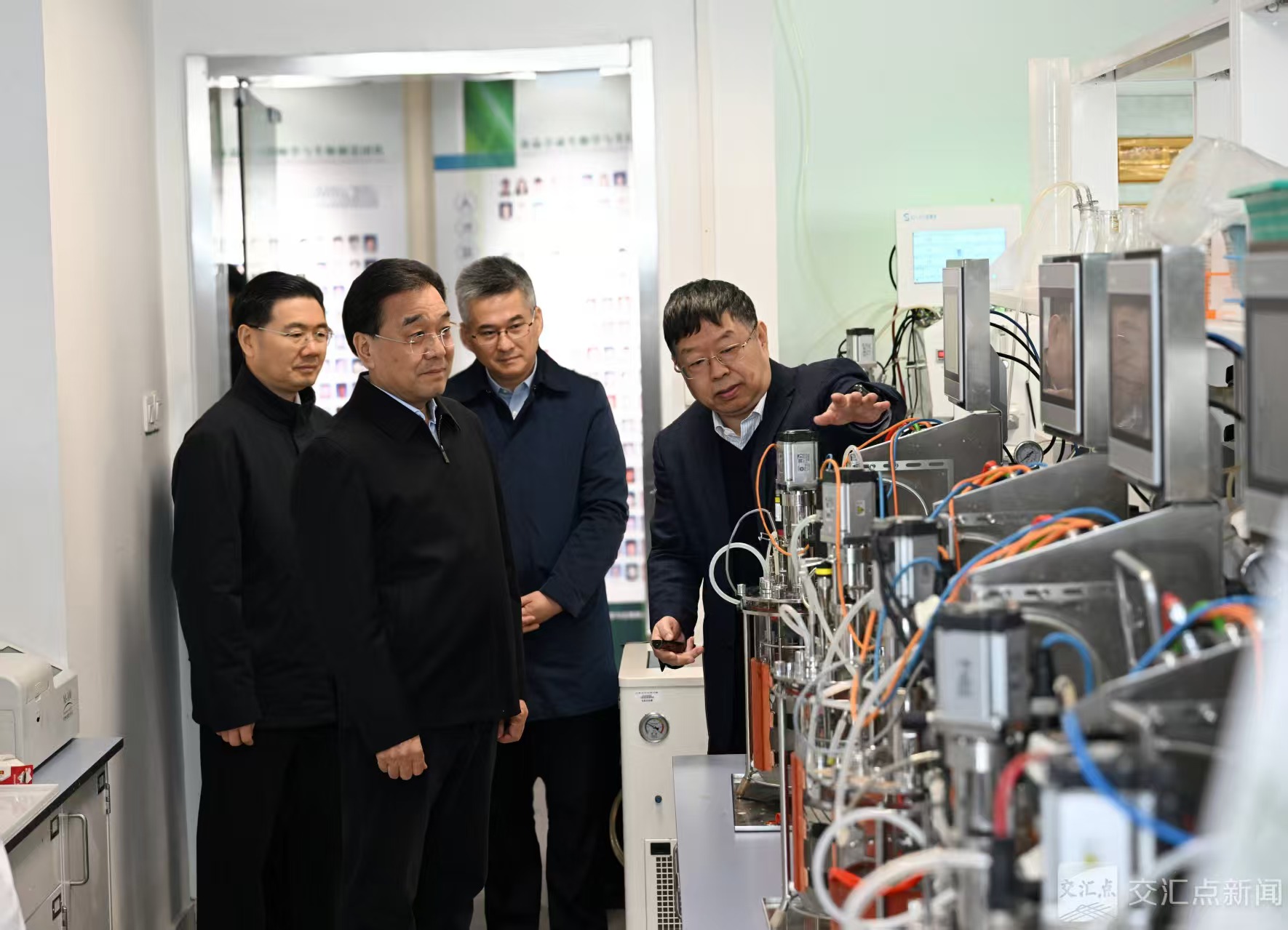 江南大学未来食品科学中心依托食品科学与工程、轻工技术与工程等优势学科,建设了多个科研平台。信长星走进实验室,与院士专家交流,听取食品合成生物学、新质蛋白等领域成果转化应用情况介绍。他指出,党的二十届四中全会对深入推进“双一流”高校和国家交叉学科中心建设作出战略部署,要深入践行大食物观,推进学科交叉融合和跨学科研究,开发丰富多样的食物品种,更好满足人民群众美好生活需要。要推动生物制造与人工智能、量子计算等融合发展,促进科研范式变革,加速科技创新突破,积极抢占未来食品科技制高点。