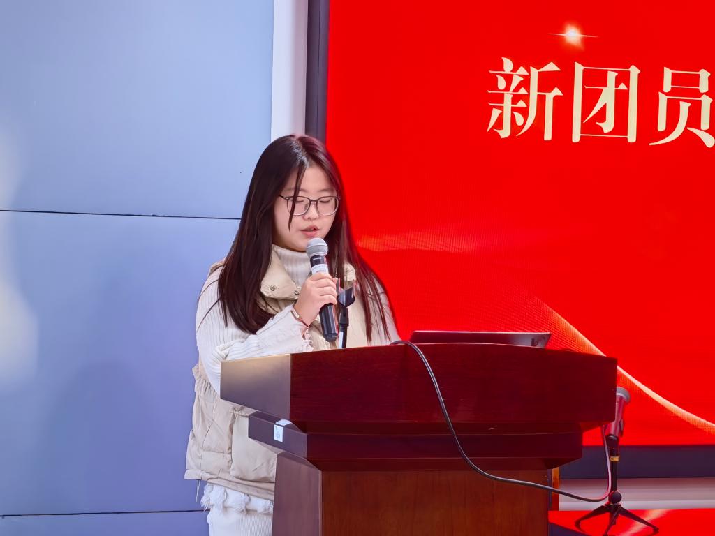 新团员代表王玉莹在发言中表达了对团组织的向往与加入共青团的激动之情,她表示将努力学习、积极实践,不负团组织的培养与期望。老团员代表申一寒结合优秀校友事例,鼓励新团员珍惜荣誉、勇担使命,在集体中成长,在实践中进步。邓昌海代表人文学院分团委对新团员表示热烈祝贺并提出三点希望:第一,以信念为舵,在思想淬炼中坚定方向;第二,以勤学为基,在人文浸润中增长才干;第三,以实践为翼,在躬身力行中绽放青春。他勉励新团员以入团为起点,把誓言刻在心上、把行动落在实处,争做有理想、敢担当、能吃苦、肯奋斗的新时代好青年。
