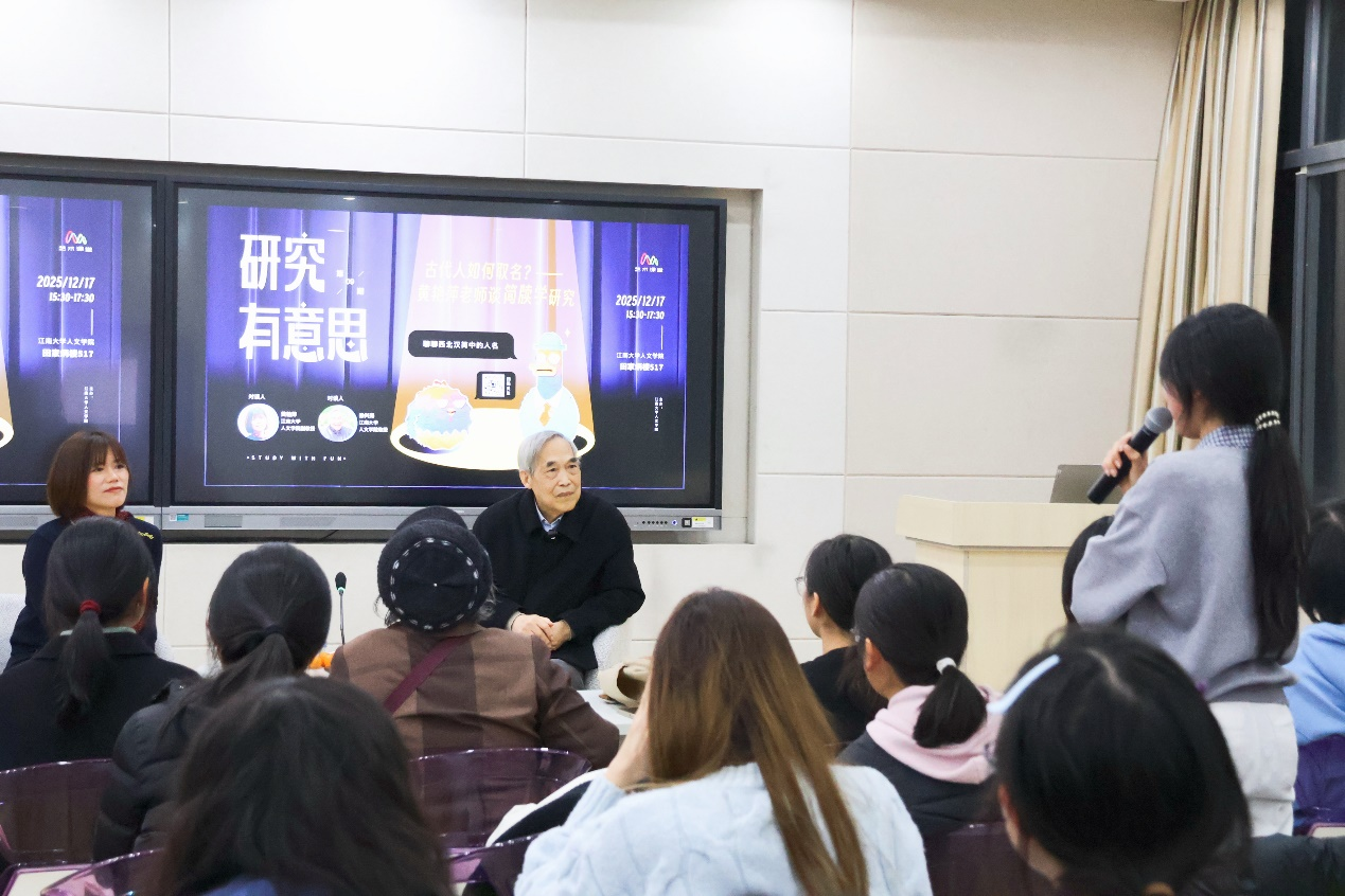 12月17日下午,江南大学艺术课堂之《研究有意思》第九期文化对谈活动《古代人如何取名?——黄艳萍老师谈简牍学研究》在人文学院田家炳楼517会议室举办。本期对谈嘉宾为江南大学人文学院教授徐兴海、江南大学人文学院副教授黄艳萍,60余位师生参加了本次活动。