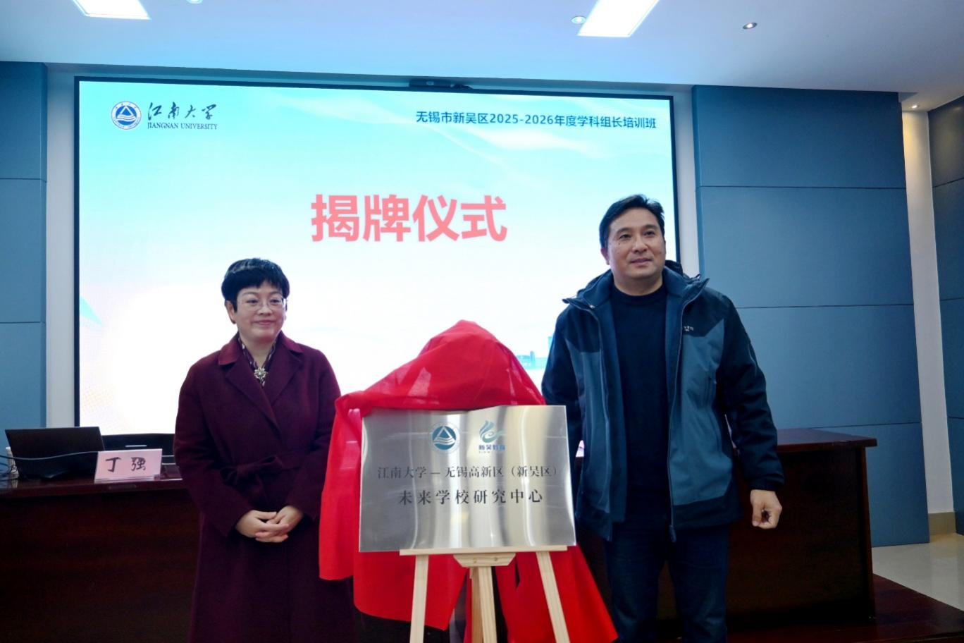 伍红林与杨柳共同为江南大学-无锡高新区(新吴区)未来学校研究中心揭牌