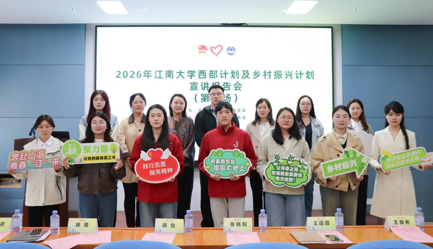 “到西部去,到基层去,到祖国和人民最需要的地方去”这既是青春的召唤,更是青年矢志不渝的誓言。此次宣讲会进一步激励青年们投身基层一线,参与乡村振兴实践,凝聚起服务基层、奉献祖国的青春共识。期待更多江南学子接过这项青春事业的接力棒,把青春理想扎根在西部大地与乡村沃土,为全面推进中国式现代化建设贡献青春力量。