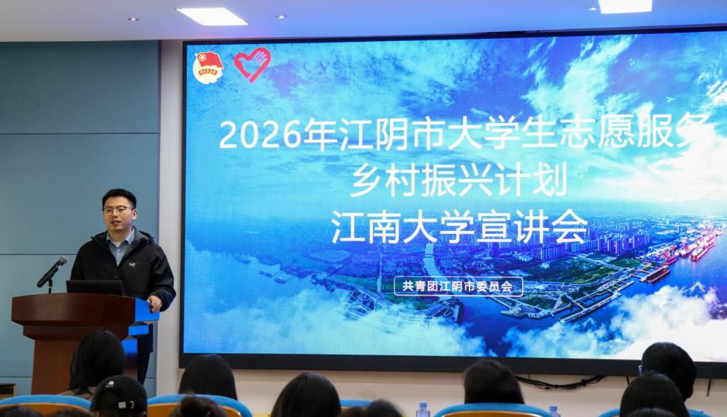 随后,张晓阳从江阴市经济发展、科技创新、服务内容、政策保障等维度,介绍了江阴市“大学生志愿服务乡村振兴计划”的具体实施情况。据悉,2026年江阴市计划新招募乡村振兴志愿者岗位大多分布在江南大学霞客湾校区周边乡镇,志愿者将扎根基层,投身基础教育、农业科技等重点服务领域,在乡村振兴实践中实现人生价值。他热忱期待更多同学们踊跃投身基层一线,成为助力乡村振兴的青年生力军与后备人才。