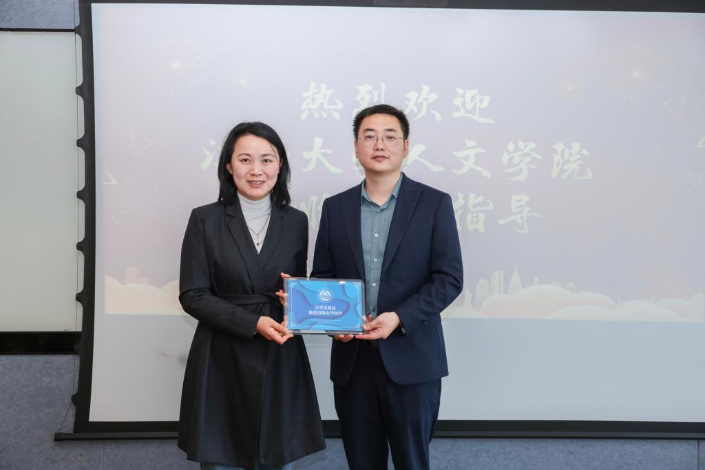 徐璐介绍了学院学生基本情况,回顾了学院与新东方一直以来的密切合作,期待双方携手探索更稳定、更通畅、更高效的合作机制,持续提升人岗匹配精准度,为毕业生打造更多优质就业岗位与广阔发展平台,并向新东方无锡学校赠送“就业最佳战略合作伙伴”纪念牌。