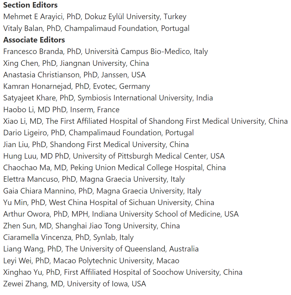 陈兴教授一直活跃于国际学术交流舞台,目前担任中科院一区期刊Briefings in Bioinformatics执行编辑,中科院一区期刊Molecular Therapy(影响因子12)、IEEE Journal of Biomedical and Health Informatics等多家SCI杂志副主编,International Journal of Biological Sciences(影响因子10)等多家SCI杂志编委,以及多个国际学术会议的程序委员会成员。