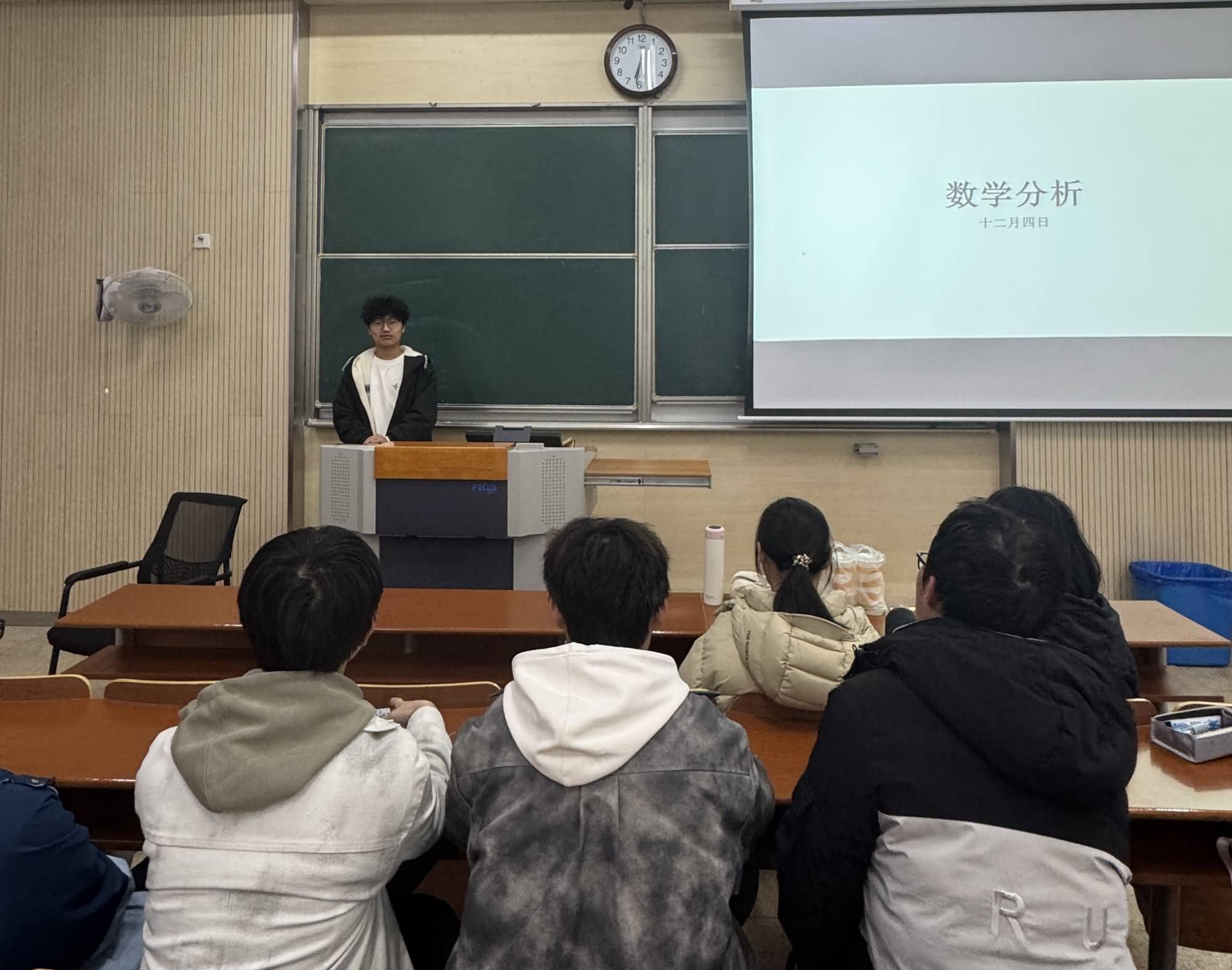 12月4日晚,“理学堂”第四期集体学业帮扶活动于1A114教室顺利开展,本次活动聚焦《数学分析Ⅰ》的核心章节——《极限与函数》,由信计2502班王宇航同学主讲,近20名同学参与学习交流。