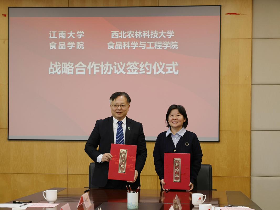 在与会人员的共同见证下,孙秀兰与吕欣代表两院正式签署《战略合作协议》。根据协议,双方将本着“优势互补、资源共享、协同创新、共同发展”的原则,在人才培养、科学研究、社会服务等领域建立全面战略合作关系。同时,江南大学食品学院食品质量与安全控制教工党支部、本科生第一党支部分别与西北农林科技大学食品科学与工程学院优质畜禽产品绿色加工和安全控制创新团队党支部、本科生食安第四党支部签署支部共建协议,旨在以党建为引领,推动业务深度融合。此次战略合作与支部共建协议的签署,标志着两院合作关系迈入全新的阶段。双方表示,将以此次交流为起点,细化合作内容,创新协作机制,共同为推动我国食品高等教育与科技事业的高质量发展贡献力量。