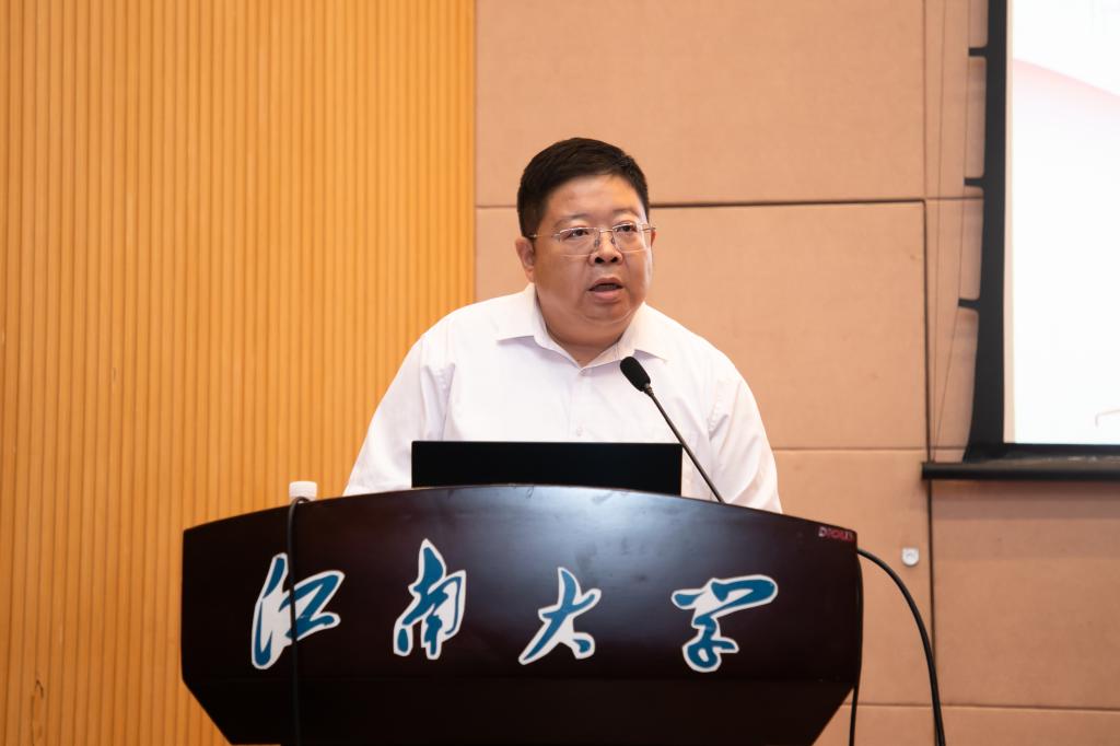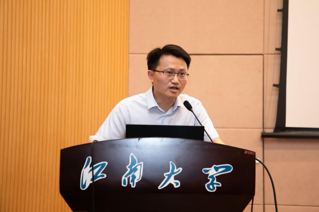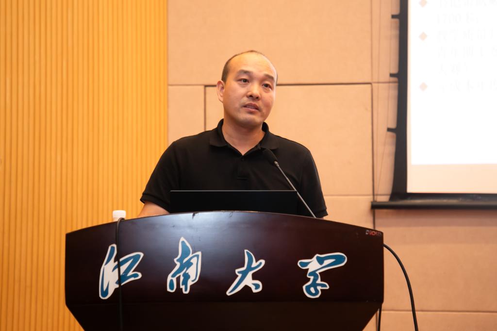校弘扬教育家精神宣讲团成员、外国语学院朱义华副教授以《“译”路前行 语育成长》为题作专题宣讲。他以质朴无华的语言,回溯二十四年从教岁月,深情分享了在管理育人与思政育人、课程育人与实践育人、科研育人与心理育人、实践育人与文化育人等多个维度,与学生并肩同行、共同成长的鲜活故事。这些点滴叙事,生动勾勒出新时代高校教师爱岗敬业的精神底色,深刻诠释了甘于奉献的崇高职业情怀。这份“以真心换真心”的育人实践,让在场教职工深受触动。