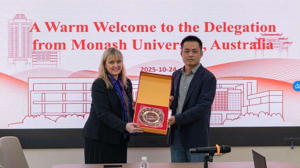 会上,双方围绕下一阶段的工作重点,就年度工作部署、教学安排与课程体系优化等议题深入交流,并重点讨论了师资外派的长效机制。会后,浦徐进向Carla Wilkin赠送学院40周年文创纪念品。代表团一行在校方陪同下还参观了江南大学校史馆,深入了解了学校的发展历程与办学成就