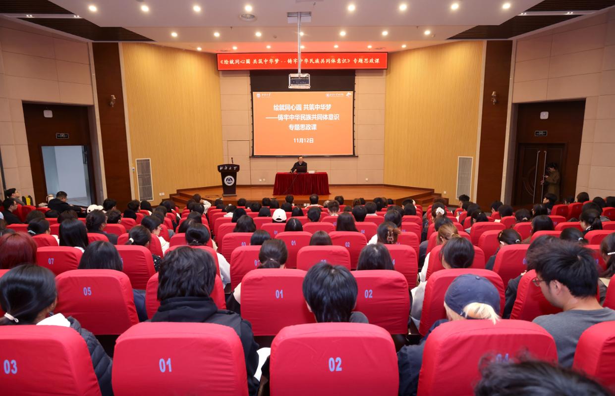 11月12日,校党委书记吴正国以《绘就同心圆 共筑中华梦——铸牢中华民族共同体意识》为题,在远东报告厅为商学院少数民族学生讲授思想政治理论课。商学院全体少数民族学生、学生党员代表、青年博士教工党支部全体党员以及全体辅导员共计300余人参加学习。活动由商学院党委书记刘长青主持。