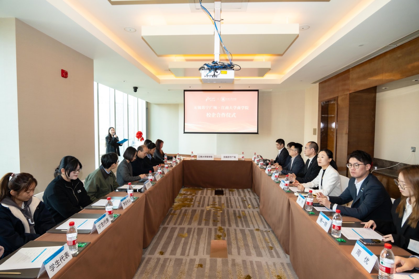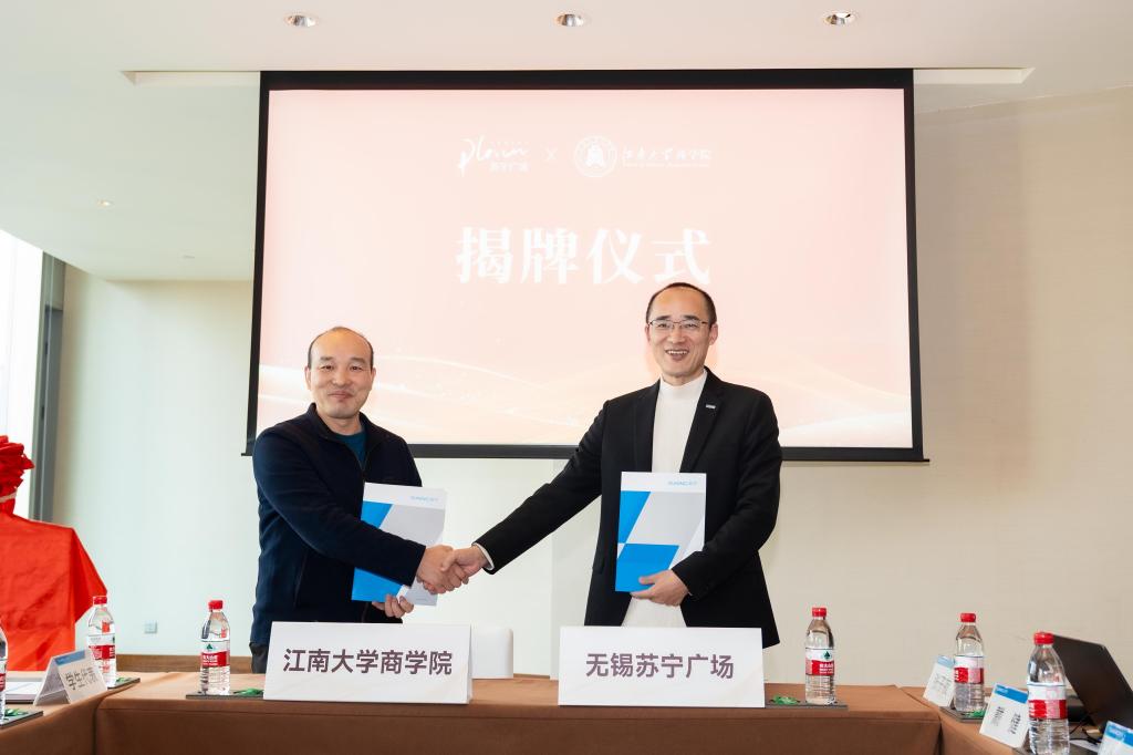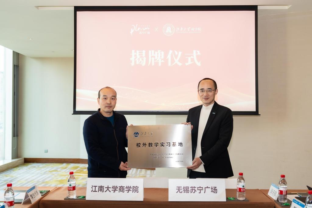 杨金对商学院师生的到访表示热烈欢迎,并表示希望能与江南大学商学院以更丰富的合作方式来深化合作伙伴关系,通过苏宁广场的地标效应带动人才需求,共同探索企业人才培养新模式。孙小芳表示,无锡苏宁商业管理有限公司的合作理念与学院培养应用型、复合型人才的目标高度契合,此次实习基地的建立,为学院学子提供了一个贴近产业前沿、锤炼实践能力的优质平台,也构筑起从课堂学习到商业实战的坚实桥梁。