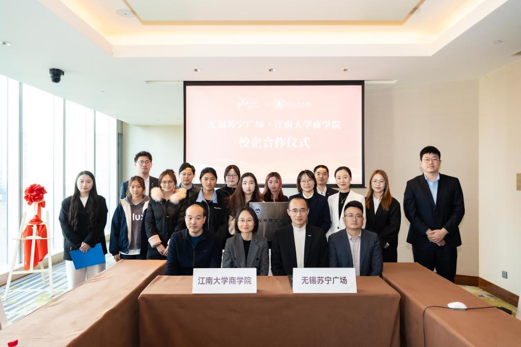 11月18日,商学院一行赴无锡苏宁商业管理有限公司,参加无锡苏宁商业管理有限公司与江南大学商学院校企合作校外教学实习基地揭牌仪式,并开展访企拓岗促就业专项行动。无锡苏宁广场总经理杨金、副总经理徐北辰、各部门总监及校友代表,江南大学商学院党委副书记兼副院长孙小芳、副院长刘勇、就业辅导员王婕妤及学生代表等20余人参加本次活动。