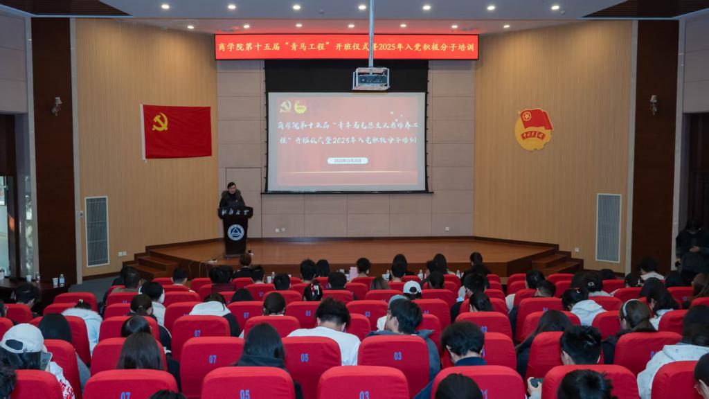 11月26日下午,商学院第十五届“青年马克思主义者培养工程”开班仪式暨2025年入党积极分子培训在远东报告厅举办。商学院党委副书记兼副院长孙小芳,马克思主义学院副教授窦新华,校团委组织部部长王牧等出席。商学院全体青马营员及2025年入党积极分子共计200余人参加活动。活动由商学院分团委书记王璁主持。