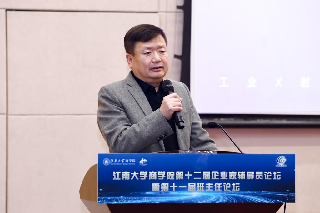 主题报告环节,上海锡明光电科技有限公司、无锡埃姆维工业控制设备有限公司总经理王振宇以《具身智能:AI驱动的制造新生态》为题,深入解析了人工智能为制造业带来的革命性变革。无锡日联科技股份有限公司创始人、董事长刘骏围绕《数智驱动产业升级:制造企业转型路径与商科人才赋能》,结合企业实践和当前就业创业现状探讨了数智化转型背景下商科人才的培养方向,为新时代商科人才培养提出具体发展建议。