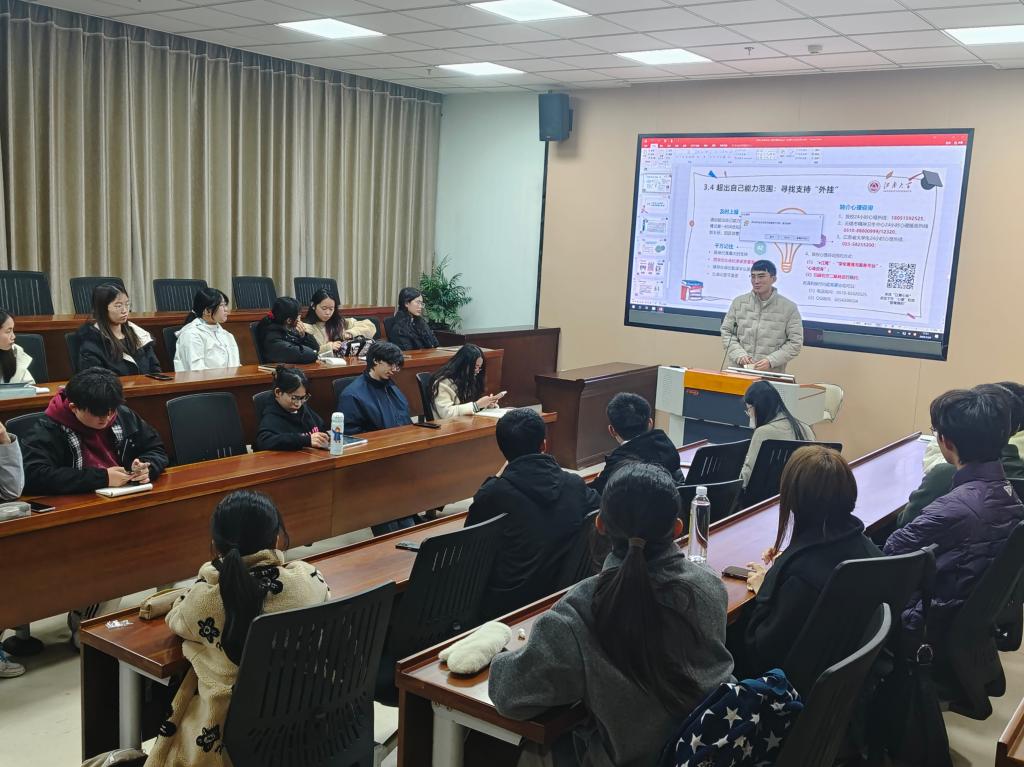 为筑牢2025级新生心理健康防护网,近日,商学院于116会议室开展2025级本硕博新生“骨干赋能+朋辈传帮带”寝室长心理健康专题培训。本次培训由学院心理健康教育辅导员田雨主讲,2025级本科新生辅导员蒋天琪、陈滢恬参加,本硕博全体新生心理委员参训。