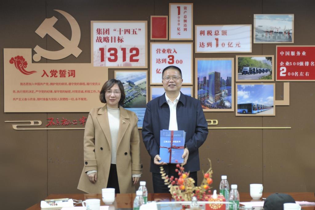 活动最后,李旸代表江南大学向无锡交通产业集团赠送《2025江南案例蓝皮书》,刘长青代表江南大学商学院向交通集团赠送学院纪念盘。