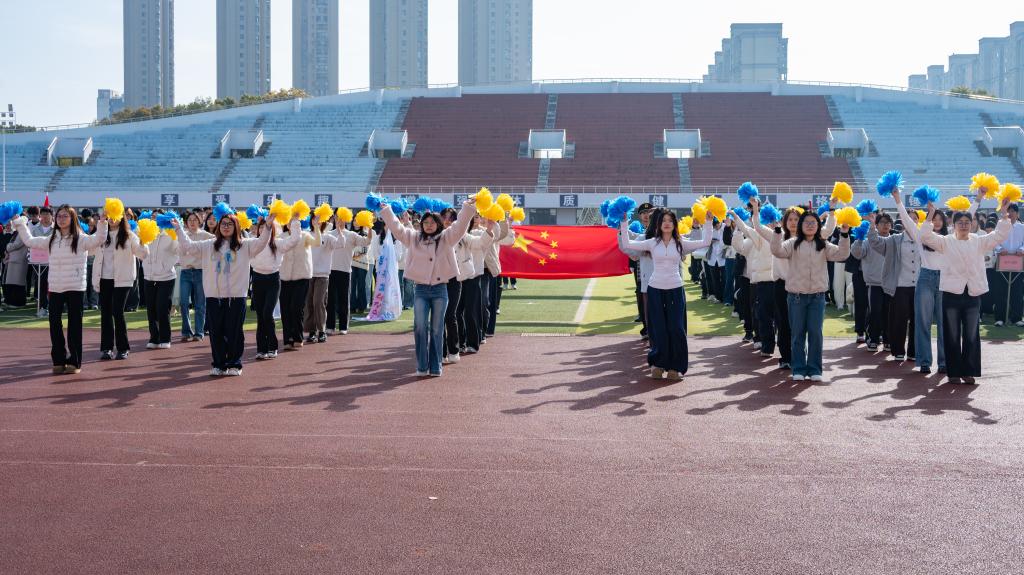 绿茵场上,国旗队、院旗队、2025级新生各班方阵以及2024级各专业方阵迈着整齐有力的步伐依次通过主席台,接受检阅。由学院各年级本科生、研究生精心编排的24支特色方阵,以创意与活力交织的表演,展现了青春与运动的蓬勃朝气。自筹备运动会入场式以来,各方阵成员群策群力、各展所长,利用课余时间反复打磨动作、精进配合。一遍遍调整细节,一次次提升默契,只为在开幕式上呈现最昂扬的青春风采。