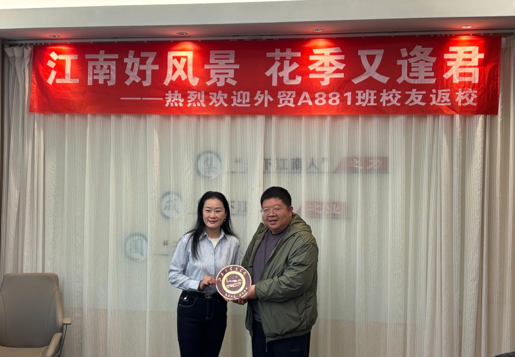 3月28日,商学院外贸A881班校友集体返校参观,并向学院捐赠会议桌,以实际行动表达对母院的深厚情谊。商学院党委书记刘长青出席座谈交流活动。