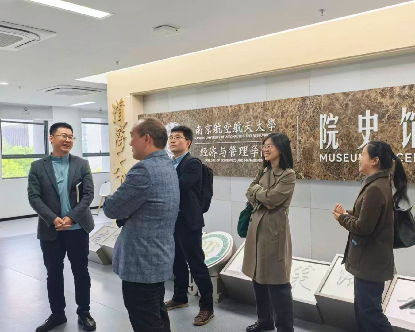 会后,江南大学商学院调研团队在南京航空航天大学经济与管理学院负责人陪同下,参观了本科重点实验室和院史馆。团队实地考察了实验室设备与学生实践成果,并通过展板、档案等资料了解了学院的创立背景、发展历程及成就。