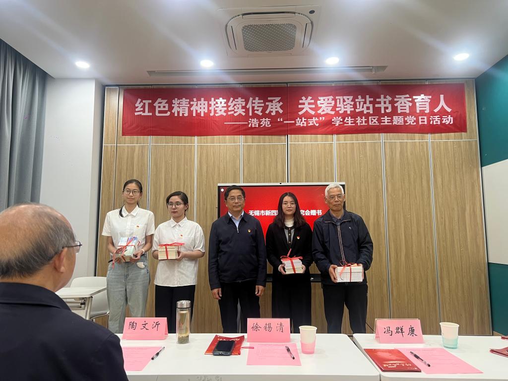 活动伊始,徐锡清代表无锡市新四军历史研究会,向浩苑关爱工作室及学生党支部代表捐赠红色书籍。本次赠书包含《信仰——革命烈士不屈的灵魂》《战地风云》等十种书籍共计131本,进一步丰富了社区思政教育阵地的红色资源,增添浓郁红色书香,助力青年学子在红色阅读中学史明理、学史增信、学史崇德、学史力行。