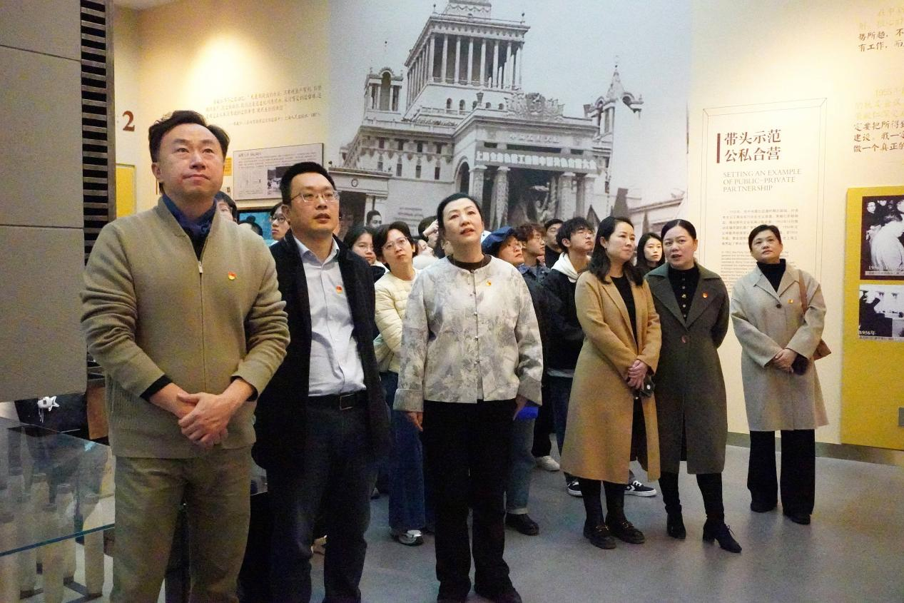 当日下午,师生队伍怀着崇敬之心走进荣毅仁纪念馆。在讲解员的专业引领下,大家驻足凝视多媒体史料中的峥嵘岁月,细品珍贵文献里的赤子情怀,沉浸于场景复原的历史瞬间,系统回溯了荣氏家族“实业救国守初心、诚信笃行担使命、支持革命显担当”的百年红色征程。值此荣德生先生诞辰150周年之际,其“教育兴邦、实业救国”的远见卓识更显穿越时空的感召力,而荣毅仁先生“胸怀大局、心系家国”的责任担当,亦让师生们深切感受到锡商精神的核心要义。在一张张老照片、一件件老物件前,师生们轻声交流、深刻感悟,清晰梳理出荣氏家族与江南大学“因教结缘、因志相守”的历史脉络 —— 从先生捐资助学、兴办教育的初心,到学校赓续文脉、育人为本的使命,红色基因早已深深镌刻在校史年轮中。作为双带头人党支部践行党建引领的生动实践,此次参观以诞辰纪念为契机,让师生在追溯校史根脉中,将锡商精神与党员初心使命紧密相连,为赓续红色血脉、筑牢信仰之基注入了强劲的精神力量。