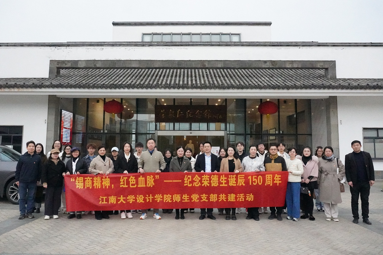 恰逢荣德生先生诞辰150周年,为深入践行党建引领与“三全育人”协同育人理念,深挖荣氏家族与江南大学一脉相承的红色基因与校史底蕴,由江南大学视觉与信息设计系党支部书记、“双带头人”教师党支部书记工作室负责人吴祐昕老师牵头,联动学院教师党支部与研究生党支部,在校党委委员、党政办公室主任王维,设计学院党委书记王维青、院长魏洁、党委副书记兼副院长江琳娜的带领下,40名师生赴荣毅仁纪念馆开展“锡商精神・红色血脉”党建共建主题活动,以校史为媒、以先贤为镜、以精神为魂,推动党建工作与育人实践深度融合、互促共进。