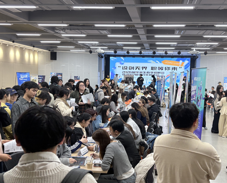 为深入贯彻党中央、国务院关于高校毕业生就业创业工作的决策部署,抢抓“金三银四”春季求职黄金期,切实做好设计类专业毕业生就业服务与实习对接工作,近日,由设计学院主办的“设创无界,职等你来”2026届毕业生春季招聘会暨2027届实习生双选会在北区大学生活动中心F105招聘大厅举办。本次活动以精准高效的校企对接机制,为设计学子搭建了高质量的职业发展平台。