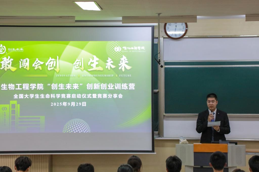 为深入推进2025-2026学年学院学科竞赛工作,进一步强化“以赛促教、以赛促学、以赛促创”育人实效,充分发挥学科竞赛在人才培养中的关键作用,生物工程学院于9月29日在1B103教室举办“创生未来”创新创业训练营学科竞赛经验分享会暨第十一届全国大学生生命科学竞赛启动仪式。学院学科竞赛分管辅导员周杰、第十届全国大学生生命科学竞赛获奖学生代表及学院本科生共200余人参加本次活动。