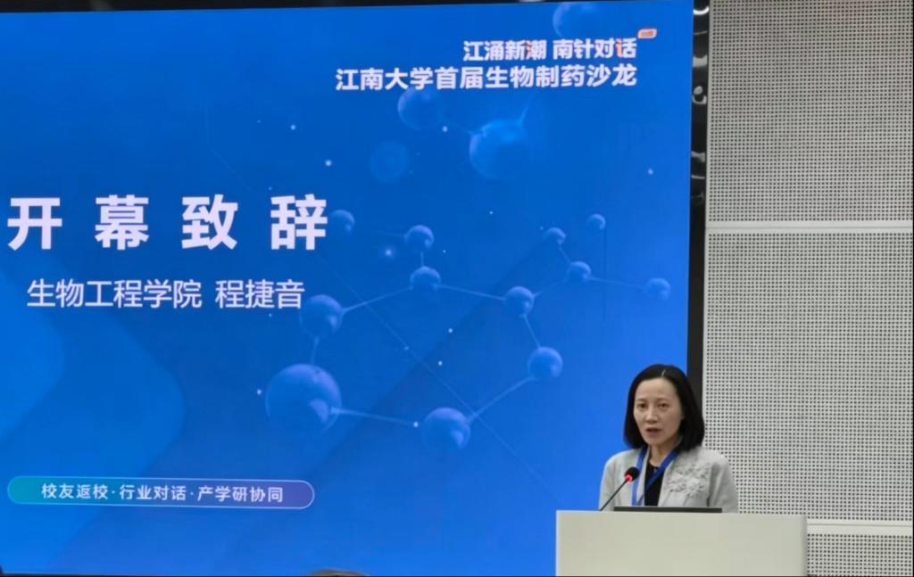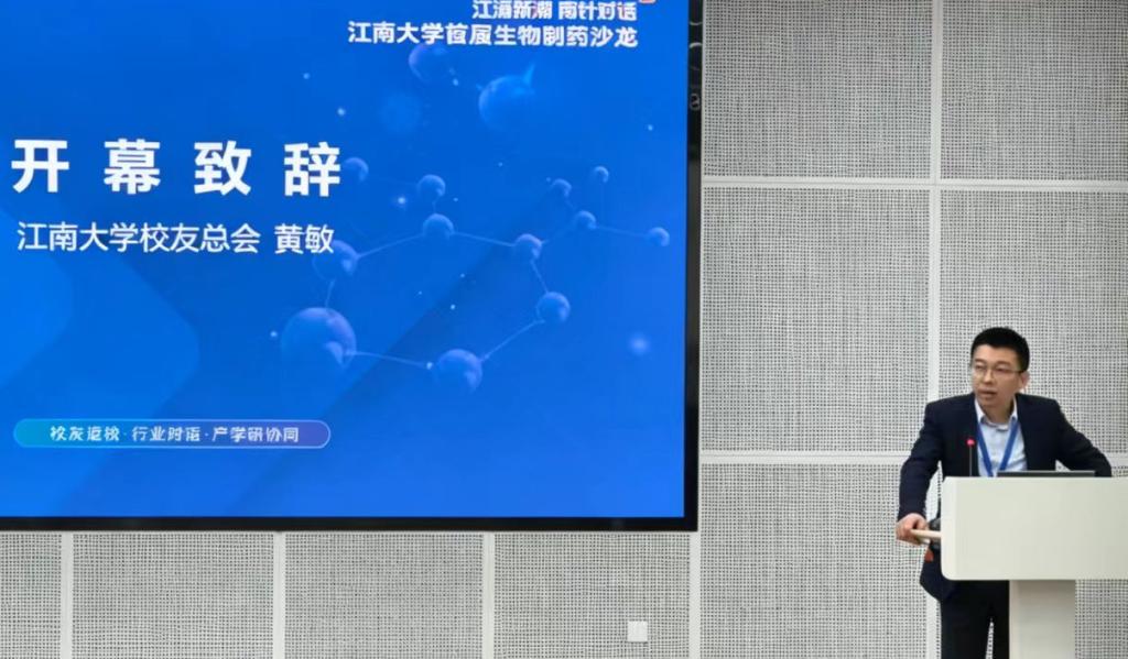4月18日,由江南大学上海校友会与江南大学生物工程学院联合主办的“江涌新潮,南针对话”江南大学首届生物制药沙龙,在江南大学生物工程学院举行。本次沙龙旨在搭建“学院+校友”“学术+产业”的深度交流平台,推动产学研协同创新,助力生物制药领域高质量发展。江南大学对外合作与市校共建处处长黄敏,生物工程学院党委书记程捷音,上海校友会执行秘书长董伟宇,上海生工校友会秘书长张志军,生物工程学院副院长聂尧、陈旭升,对外合作与市校共建处校友事务部主任宋志华,以及来自上海生工校友会、生物工程学院的师生代表共150余人参加了本次活动。