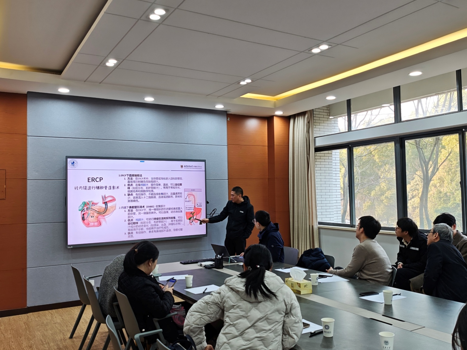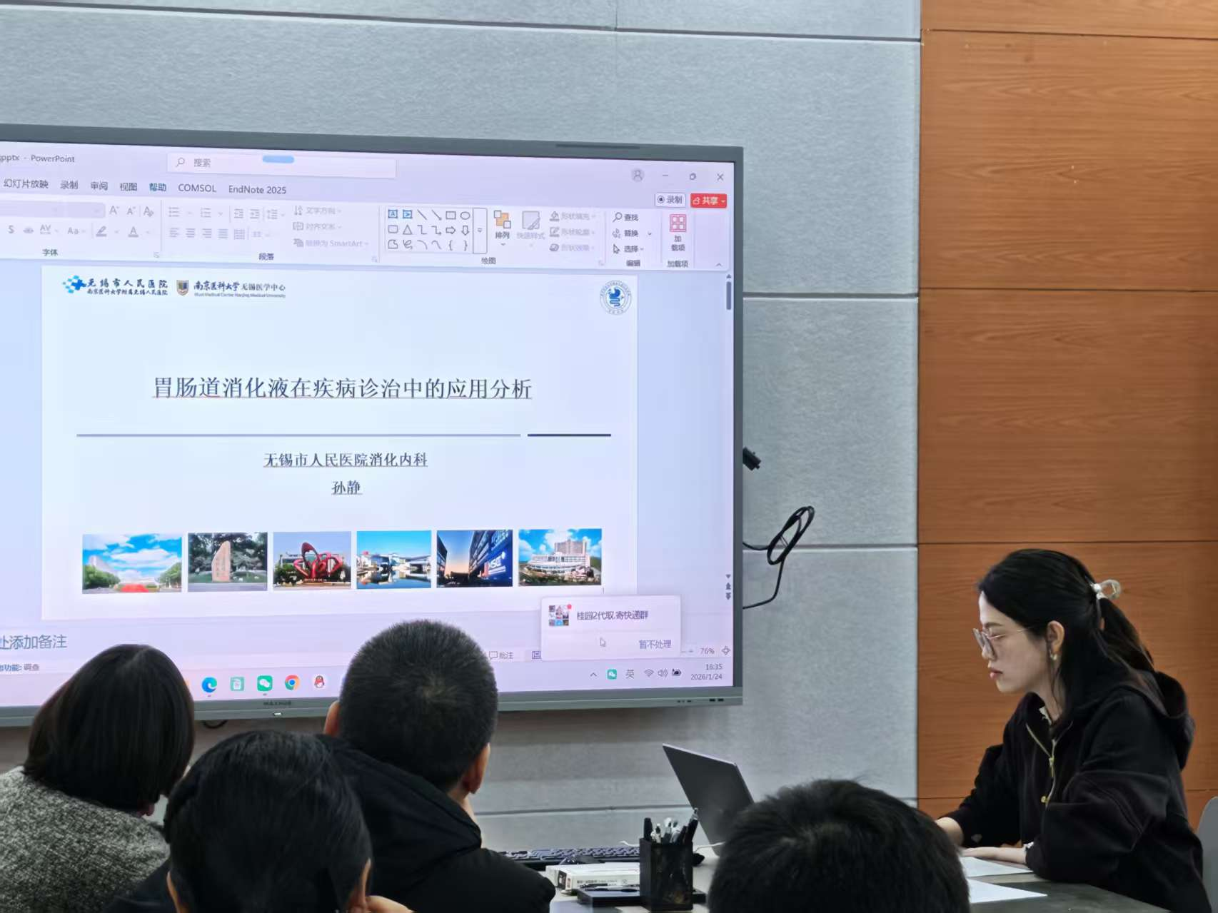 在技术分享与需求对接环节,院校双方围绕“科研前沿”与“临床痛点”展开深入交流。江南大学李恭新副教授团队展示了实验室在微纳机器人与智能诊疗装置领域的最新研究成果,重点详解了消化液采样微装置的精准化设计、内镜手术辅助机器人系统的智能化升级等核心进展,为临床难题提供了工学解决方案。无锡市人民医院消化内科杨成副主任医师则结合海量临床影像资料,系统拆解 ERCP(经内镜逆行胰胆管造影术)、ENBD(内镜下鼻胆管引流术)的现有操作流程,深入剖析了手术过程中器械操作精度、路径规划等关键痛点;孙静副主任医师围绕消化液生物标志物的临床应用价值展开分享,强调“高精度采样”是保障后续生化分析准确性、实现疾病早期筛查与精准治疗的核心前提。两位临床专家从临床实践与病理生理学角度出发,有力论证了智能微型医疗辅助机器人的研发,既是医学技术升级的必然趋势,更是破解临床紧迫需求的关键路径。