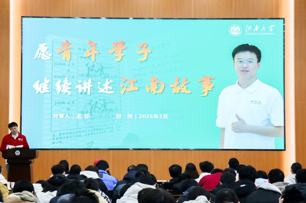 分享环节中,青春追“锋”者们依次登台,结合自身亲身经历,讲述了一段段感人至深、温暖有力的青春志愿故事。控制科学与工程2025级硕士研究生孟非,作为江南大学第26届研究生支教团成员,以青春之名赴西部之约,深情分享了自己扎根新疆于田支教一年的难忘历程。物联网2303班曲天一以《一件永不褪色的红马甲》为主题,讲述了“常州三杰”薪火志愿团五年来的坚守与深耕,用志愿讲解、手绘长卷、培训“红领巾”讲解员等方式,为传承红色文化注入源源不断的青春活力。小教2301班刘雯丽分享了自己化身太湖“护水使者”的环保实践,带领汇思工公益团的同学们开展水质检测、环保宣传等活动,用行动践行绿色发展理念。物联网2403班杜婧祎则讲述了自己从资助政策受益者到爱心传播者的温暖转变,用爱心串联起感恩与助人的温暖闭环。此外,校医院杨文军主治医师、蒋佳燕护士长带来了专业的心肺复苏与AED科普分享,结合真实案例开展理论讲解,现场演示施救流程与关键动作为师生健康筑起一道坚实的防线。
