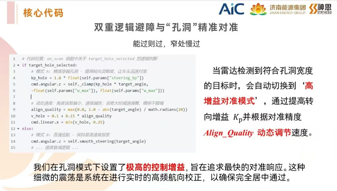 在“自主探索穿越挑战赛”中,钱雨静、张语欣、朱鹏文、冯浩四位同学基于ROS框架开发了多传感器融合自主导航系统。系统融合激光雷达与视觉信息,通过开口检测与孔洞识别算法,优先选择宽度在0.45–0.70米区间内的目标孔洞进行穿越。视觉模块实时检测白色摆锤等动态障碍与绿色终点区域,结合有限状态机完成探索、死胡同处理与终点冲刺等模式切换,实现动态避障与自主回溯。系统还引入里程计辅助定位与安全盒约束,保证运动轨迹平滑稳定,最终在未知环境中完成自主导航与障碍穿越,可靠抵达终点,荣获全国三等奖。
