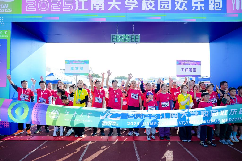 江南大学党委书记吴正国,党委副书记倪松涛,党委常委、党委组织部部长张梁,校长助理、山东第一医科大学副校长马鲁豫,体育部主任秦永和以及中国工商银行无锡分行行长徐碧云,副行长张晔蕴、杜敏,高级经理徐洪春等领导出席了起跑仪式。倪松涛致开幕辞。他在致辞中指出体育是强国之基,健康是奋斗之本,希望全体参赛师生和校友在欢乐奔跑中尽情展现,跑出突破自我的“江南速度”、跑出携手同行的“江南风采”,更跑出担当奋进的“江南自豪”。吴正国宣布开赛。比赛在热情洋溢的赛前热身操中拉开帷幕,吴正国、徐碧云为比赛鸣枪,倪松涛、张梁、王维、单筱婷、黄锋林、周伟涛、周云龙等领导作为领跑者,带领参赛的师生校友从体育中心跑道奔涌而出,踏上了充满挑战与活力的赛道。