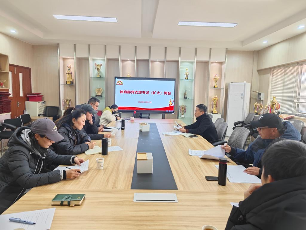 12月17日下午,体育部党支部书记例会在102会议室召开,体育部党支部书记及全体委员参会,会议由党总支书记周云龙主持。