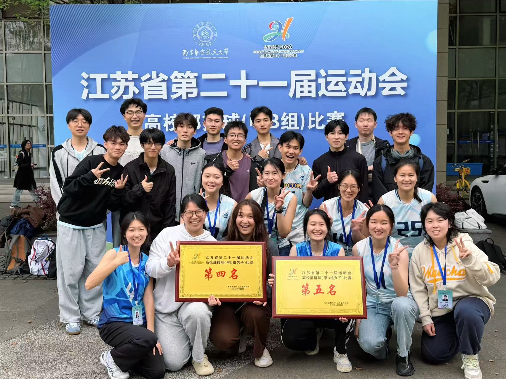 近日,江苏省第二十一届运动会高校部排球(甲B组)赛事圆满收官。江南大学男女排球队分别在袁烁、顾韶勇两位教练的带领下双线告捷。男排斩获第四名,刷新队史最佳战绩;女排荣获第五名,尽显竞技风采。