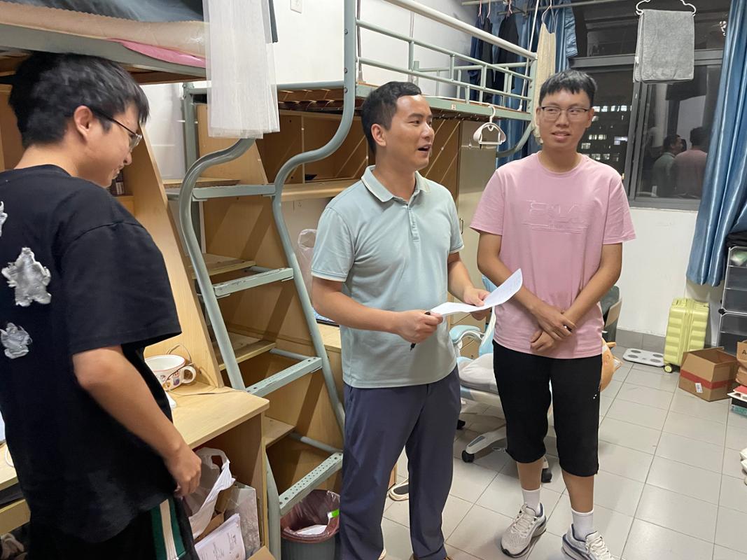 10月13日晚上,学院辅导员深入学生宿舍进行走访与安全检查。走访期间,老师们重点排查了宿舍内是否存在使用违章电器、私拉乱接电线、宿舍卫生等情况。同时,辅导员老师还结合近期案例,再次向同学们强调了遵守宿舍管理规定、安全用电、提高警惕预防网络诈骗等关键注意事项。老师们耐心叮嘱同学,宿舍是集体生活空间,安全整洁的环境需要大家共同维护,大家要遵守宿舍管理规定,为自己和他人营造一个安全、和谐、稳定的学习生活环境。