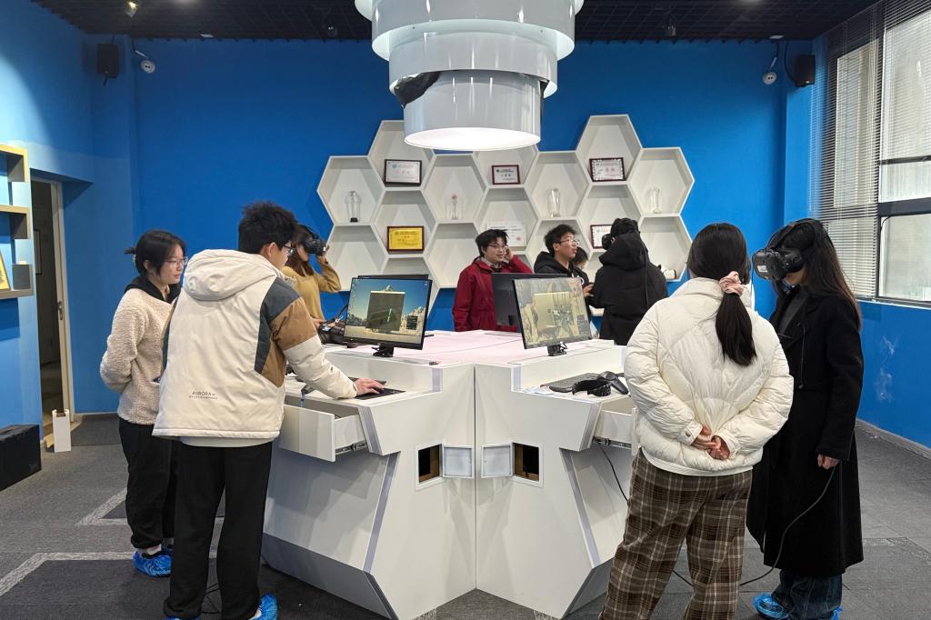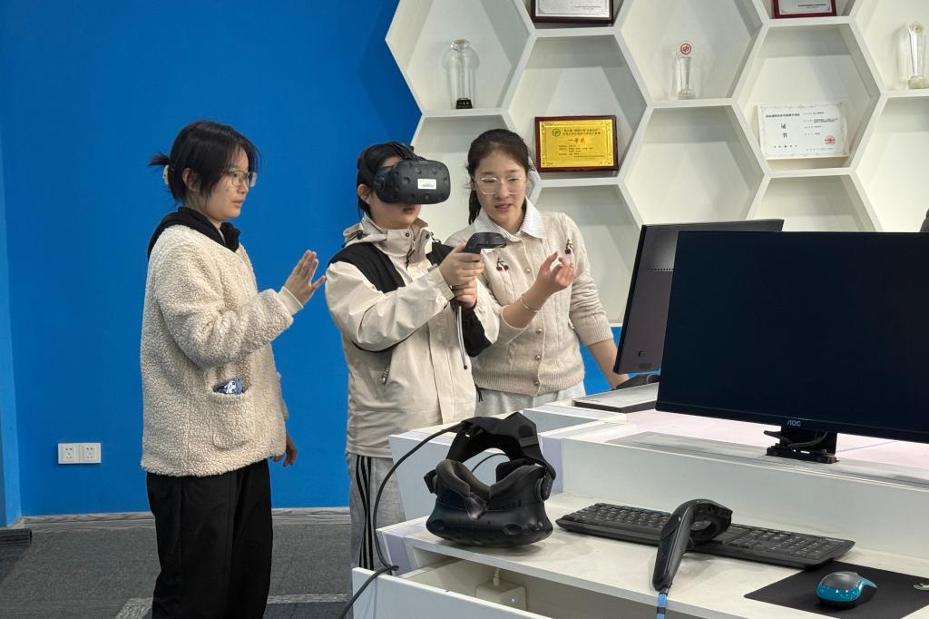 在做好安全防护的情况下,参与同学被分为四组,在科协工作人员的引导下有序进入虚拟仿真教学中心,佩戴上VR设备开启沉浸式体验。工作人员全程在旁提供一对一设备操作指导,确保每位同学能够快速上手。在体验环节,依托中心先进的硬件设备与最新迭代的生物制药虚拟仿真实训软件,同学们从“旁观者”转变为“生产者”,通过操控VR设备,沉浸式漫游车间,在虚拟仿真软件内嵌的老师讲解引导下,大家依次“走进”发酵工程车间、氢化间、三合一车间等重点功能区域,近距离观察发酵罐、氢化反应设备以及三合一设备的内部构造与运行状态,观看专业教师的实验操作,例如家兔耳朵注射,并通过回答问题,在互动考验中巩固了专业知识,实现了学用结合,并对生物制药车间的整体布局、核心仪器设备以及实际生产流程有了更为直观的认识。
