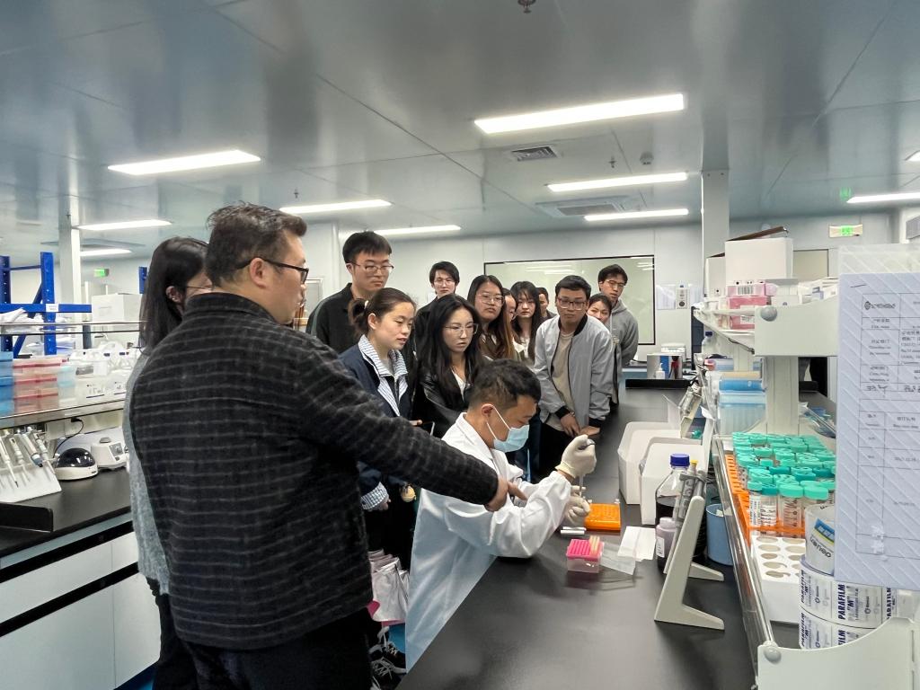 会前,学院师生实地参观了申基生物研发实验室、生产车间与公司展厅,详细了解企业发展历程、核心技术、产品布局及行业发展现状,直观感受生物医药领域前沿技术与产业生态。