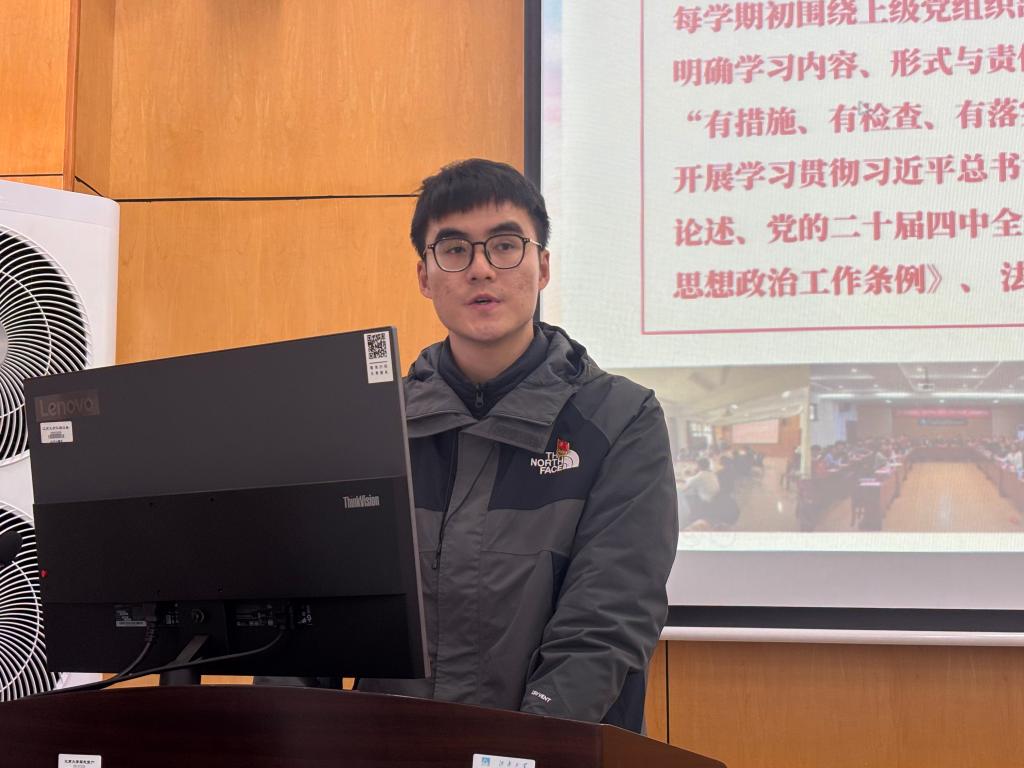 法学院研究生第二党支部严格落实“三会一课”制度,确保党员队伍管理规范化、科学化。以政治理论学习为核心,促进形成“自觉学、交流学、实践学”的学习氛围,支部成员在学术研究、农村调研与社会实践等方面展现先锋模范作用。法学院本科生第三党支部则聚焦于强化思想政治引领、筑牢学生理想信念根基、促进学风建设与成长成才,创新将主题党日活动与党史学习教育有机结合,支部成员在学业引领、实践服务与竞赛成长等方面发挥积极带头作用,确保党的思想与行动教育落到实处。其他7个学生党支部分别围绕强化组织建设、深化理论武装、创新支部活动等方面汇报工作成果。