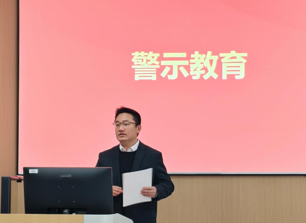 陆秦作师德师风警示教育,并结合真实案例剖析学术不端、言行失范、经费滥用、不当言论等突出问题及其背后理想信念松动、规矩意识淡薄的思想根源。他着重强调师德师风是教师评价体系中的“首要标准”,必须坚持“零容忍”态度,以刚性约束守护教育本心。同时,他进一步提出明确要求:一是强化理论武装,将师德规范、教育法规、学术伦理等作为必修课。二是恪守学术道德,将诚信精神贯穿教学科研全过程。三是弘扬清正之风,主动抵制不良风气,牢记安全准则与职业底线,带动形成风清气正、崇德向善的育人环境。